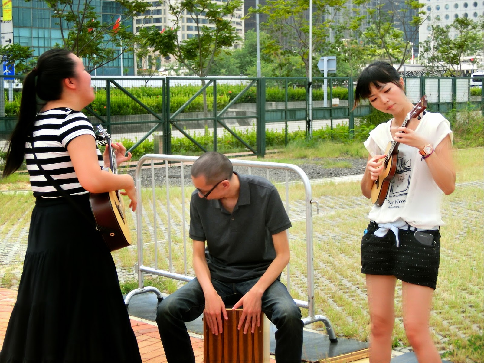On one of the hottest days of the Fall, steps away from the Pro-Democratic Student Movement, a Ukulele Festival was setting up its booths and sound checking.